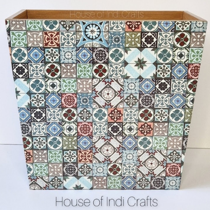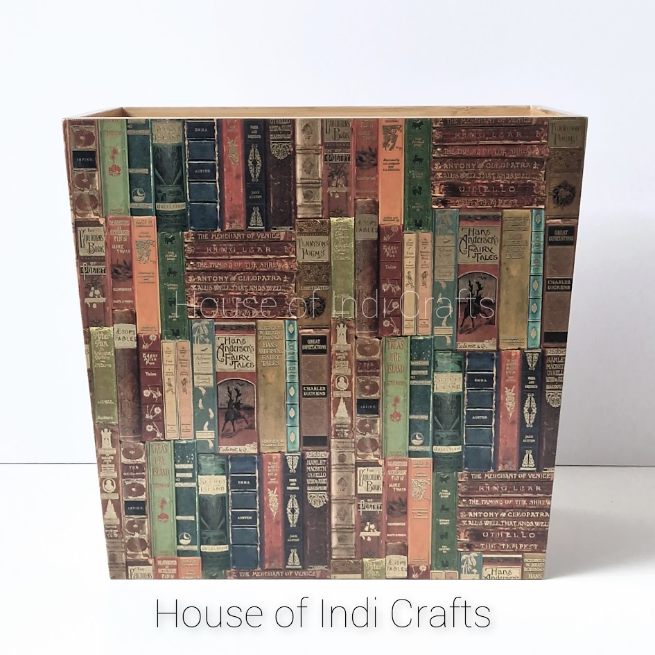 I decoupage wooden storage boxes and home decor items using beautiful printed papers.