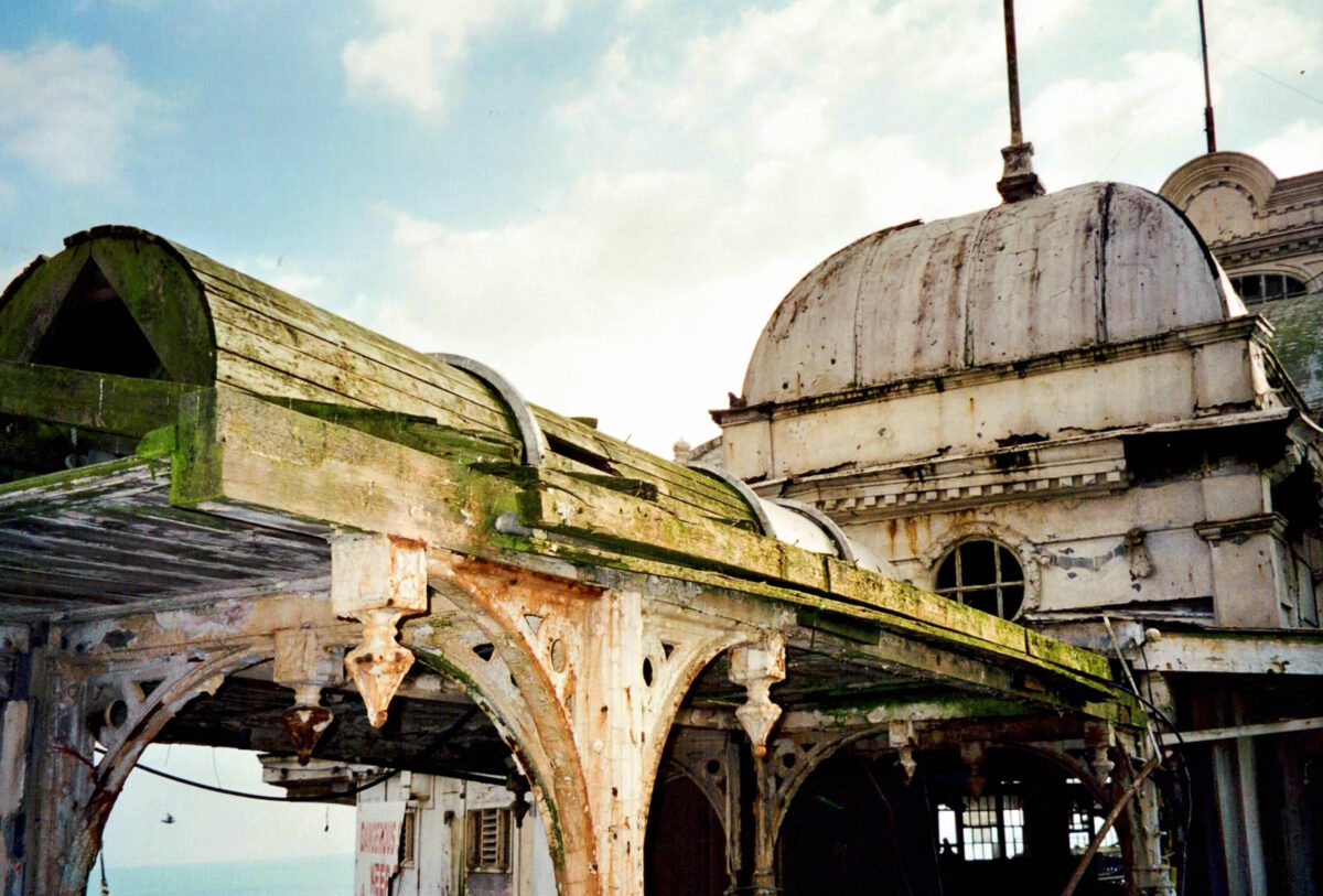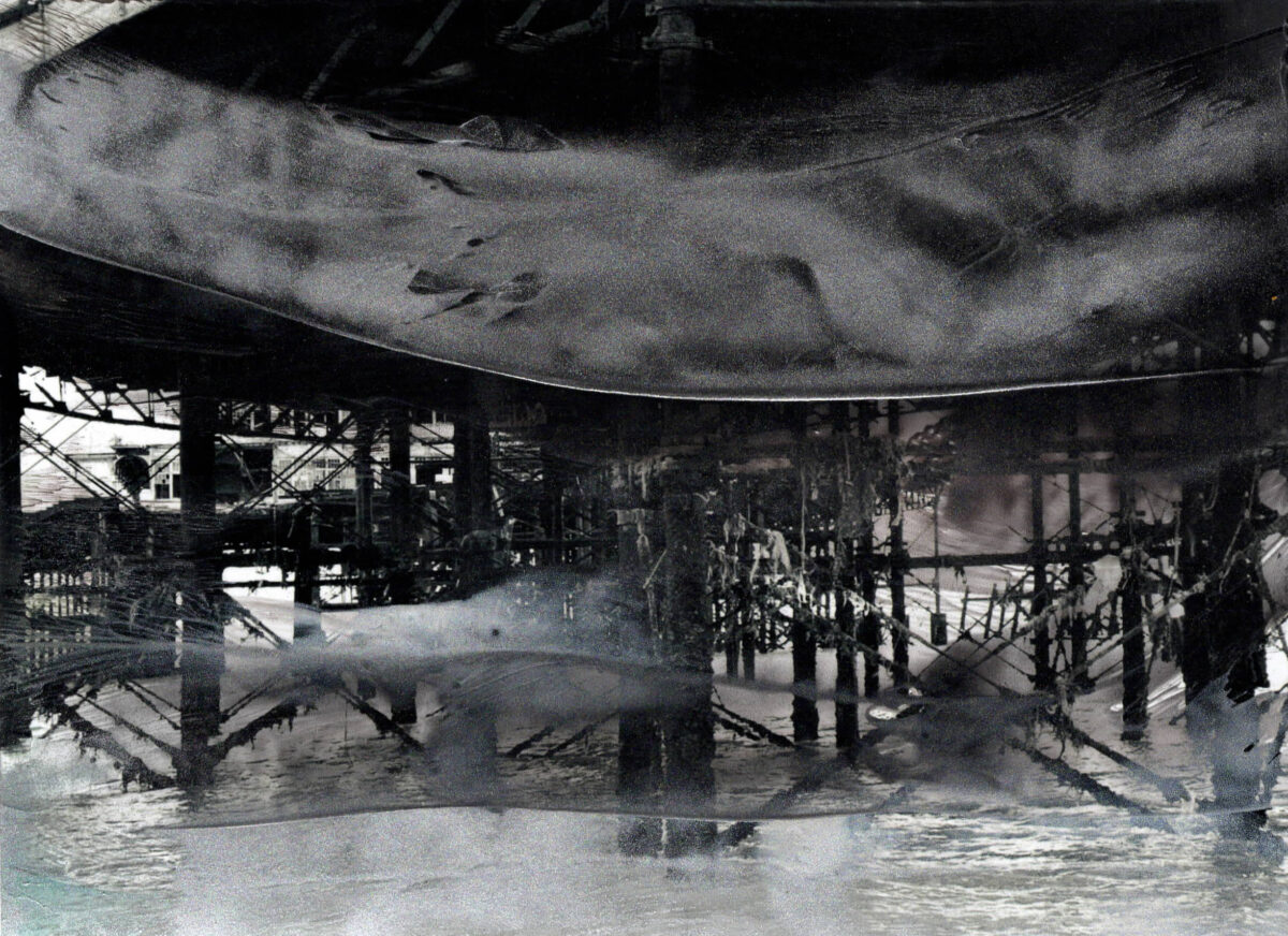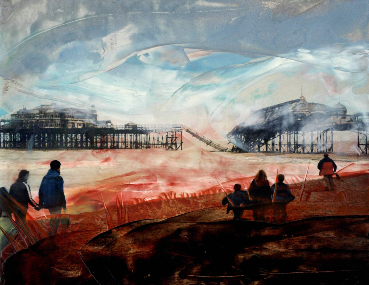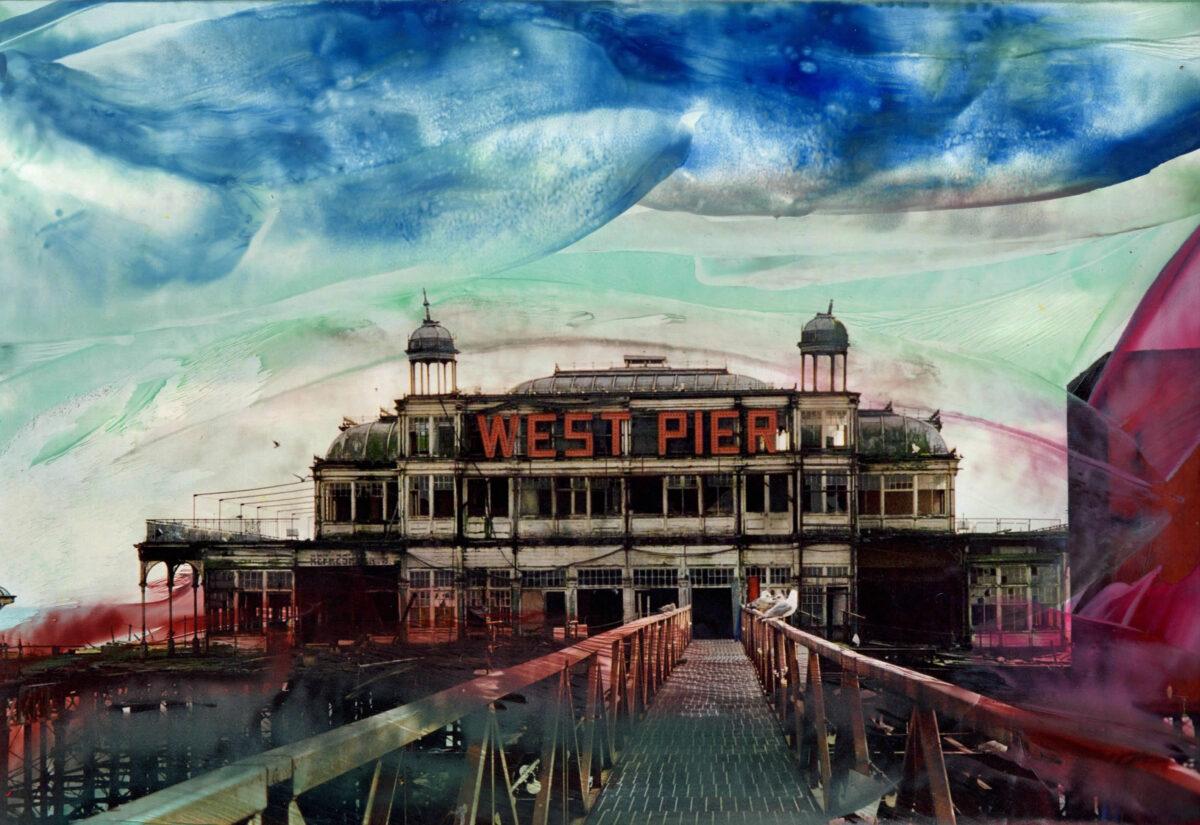 Unique mixed media artworks of Brighton using old photography with coloured beeswax overlaid.